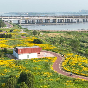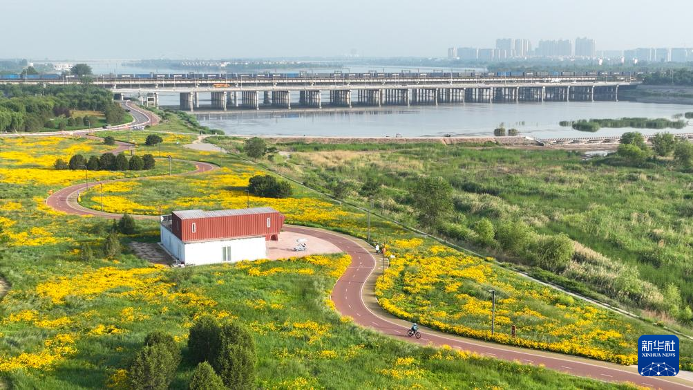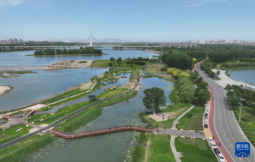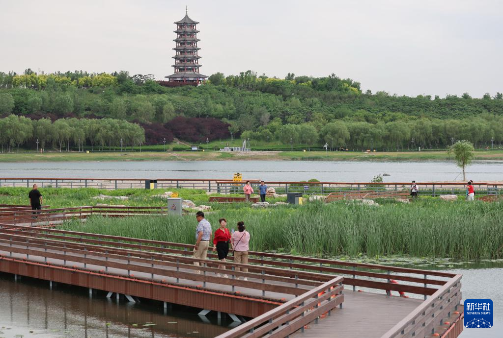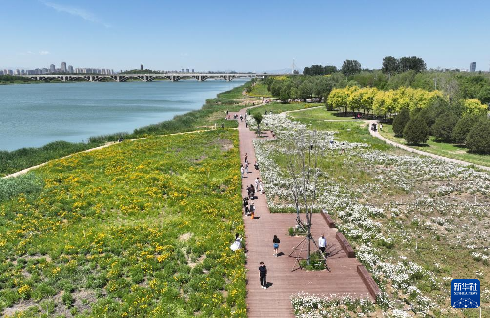 5月14日,石家庄市民在滹沱河生态区(城区段)休闲赏景。