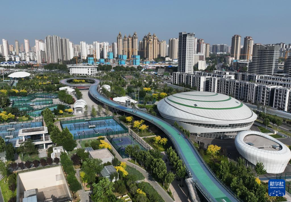 5月19日拍摄的石家庄市高铁片区中央绿色体育公园(无人机照片)。