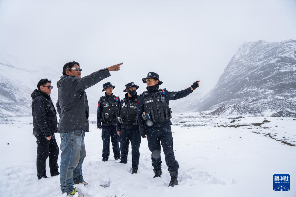 在那曲市索县西昌乡,当地民警向牧民普及虫草采挖的安全区域(5月18日摄)。