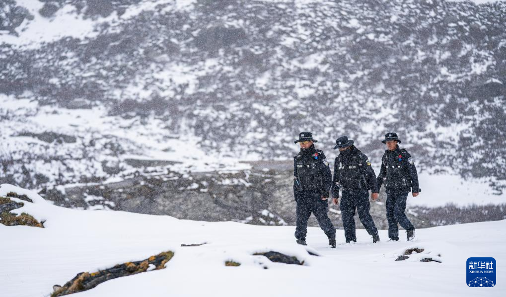 在那曲市索县西昌乡,当地民警在虫草采挖区巡逻,确保牧民不在恶劣天气采挖虫草(5月18日摄)。