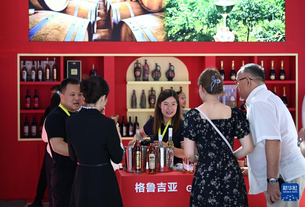 5月21日,在第九届丝绸之路国际博览会暨中国东西部合作与投资贸易洽谈会丝路优品展上,参观者了解格鲁吉亚商品。