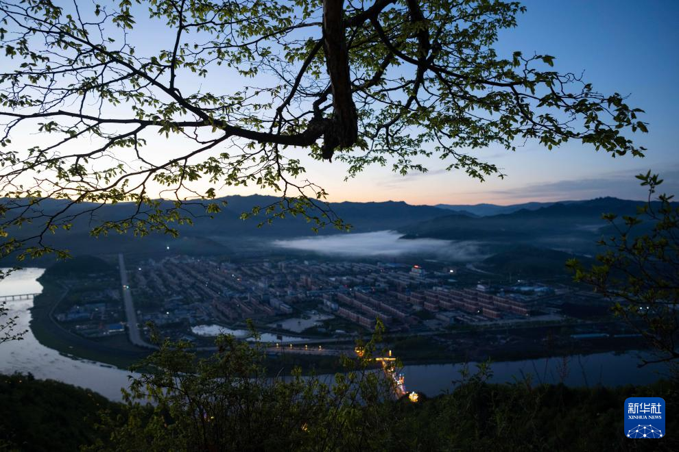 这是5月21日凌晨在伊春市金祖峰景区内拍摄的金林区金山屯镇。