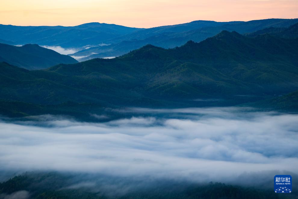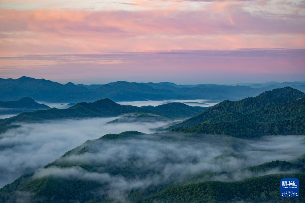 这是5月21日日出时分在伊春市金祖峰景区拍摄的森林云海景观。