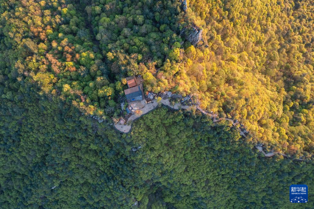 5月21日清晨,游客在伊春市金祖峰景区山顶观赏日出(无人机照片)。