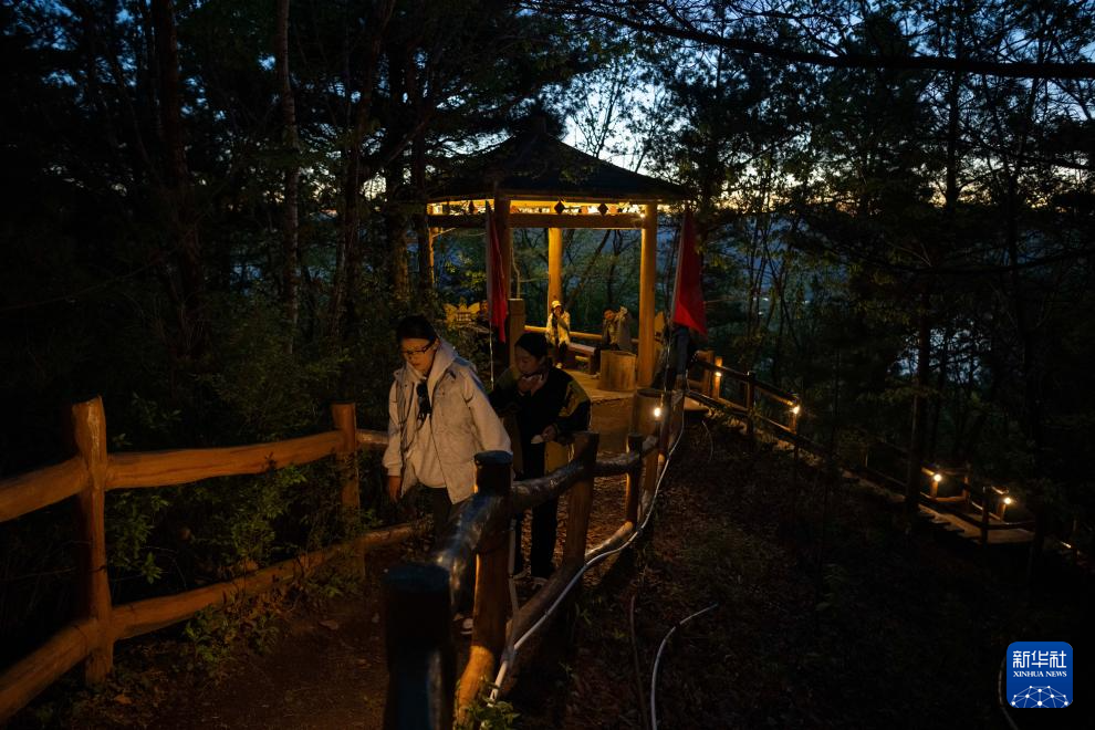 5月21日凌晨,游客在伊春市金祖峰景区行走。