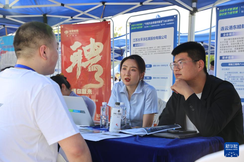 当日,“千校万企供需对接会”(连云港专场)暨江苏省2025届高校毕业生就业“百日冲刺”行动在江苏连云港举行。线下百余家企业和线上千余家企业共提供超1万个工作岗位,涵盖生物医药、集成电路、智能制造等行业。