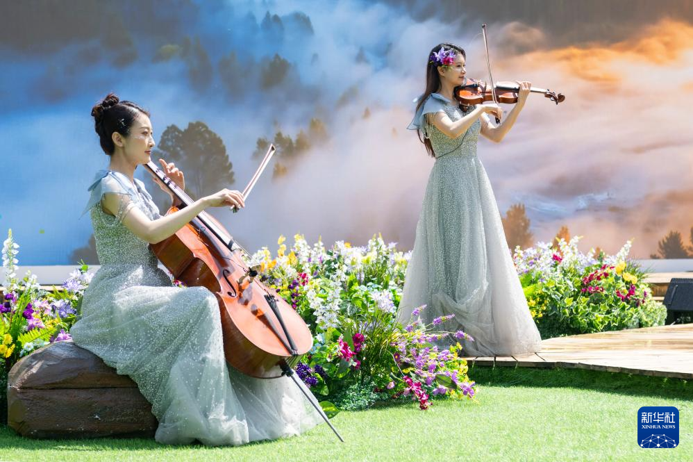 5月22日,乐手在伊春市溪水国家森林公园举行的2025年国际生物多样性日宣传活动现场表演。