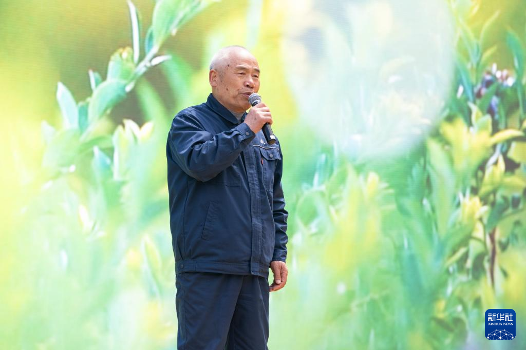 5月22日,退休林业工人张道廷在2025年国际生物多样性日宣传活动上发言。