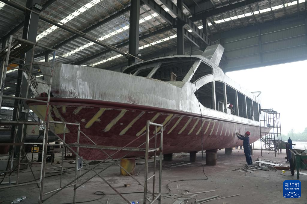 5月22日,工人在位于沅江市的湖南海荃游艇有限公司生产新能源船舶。