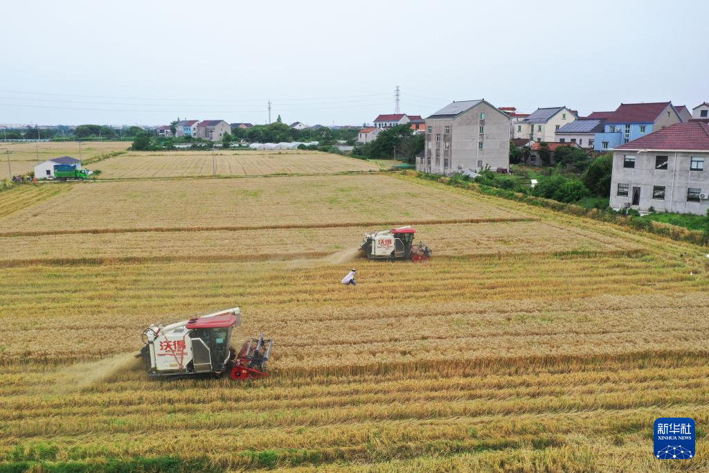 5月22日,在浙江省嘉兴市南湖区凤桥镇永红村,农机手驾驶收割机收割小麦。