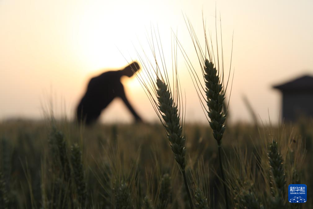 5月21日,河南省商丘市夏邑县会亭镇贾楼村农民在麦田内查看麦粒饱满程度。