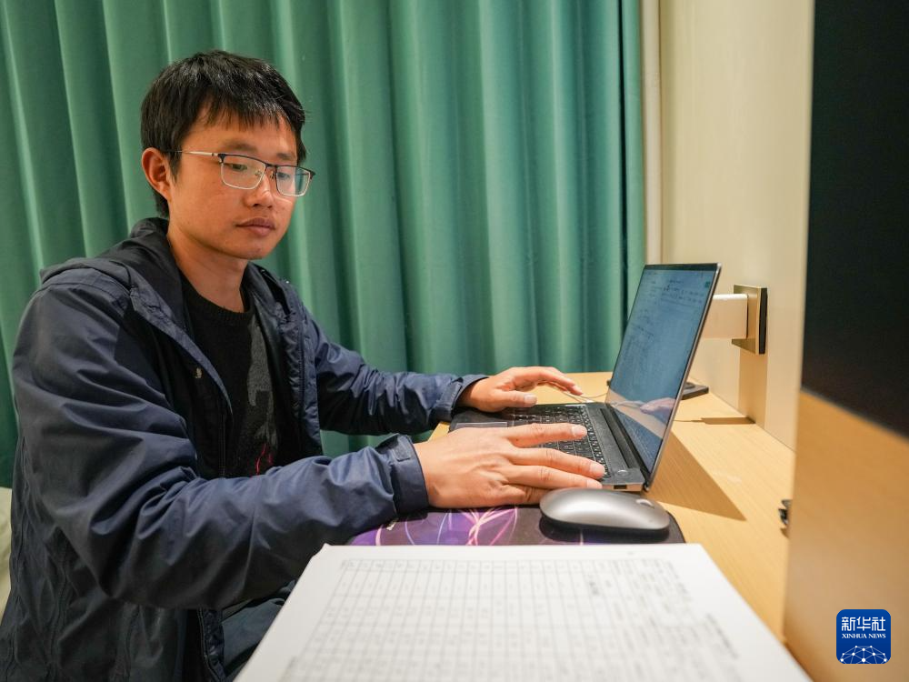 在四川省阿坝州松潘县,野外工作结束后喻燚回到酒店整理当天的渔获物数据(5月20日摄)。