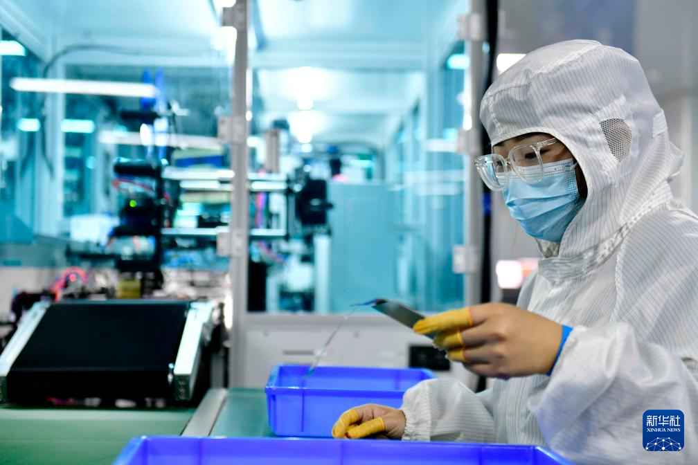 5月20日,山东多亿电子科技有限公司工作人员在查验手机显示屏。