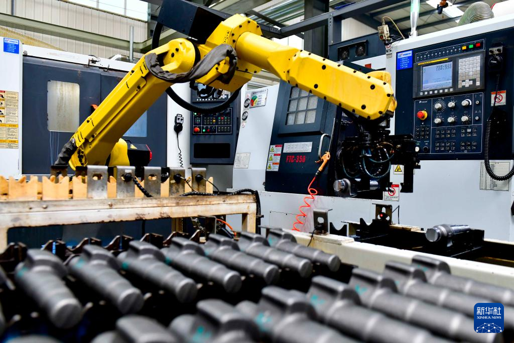 5月21日,金马工业集团股份有限公司工业机器人在加工汽车零部件。