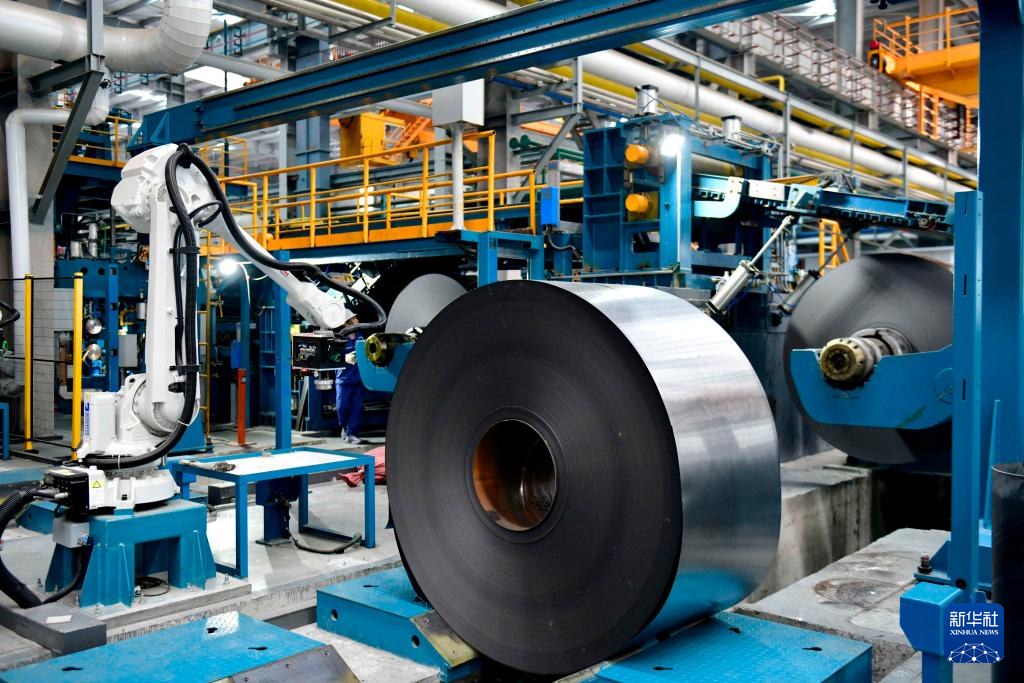 5月21日在日照昱岚智造产业园拍摄的钢卷生产线。