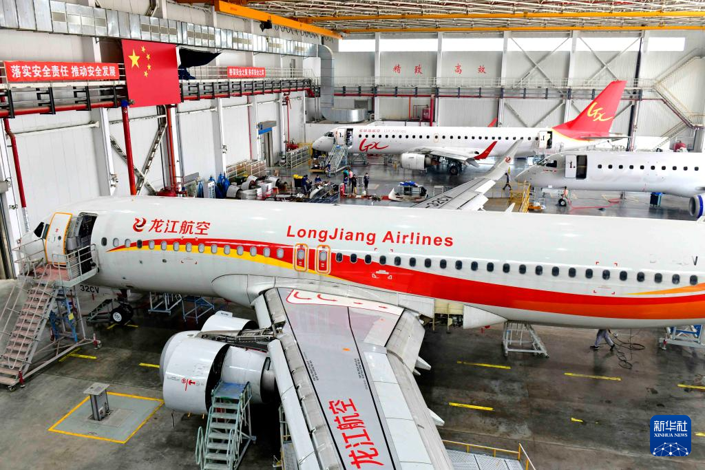 5月15日,日照市东港区山太飞机维修基地工作人员在维修飞机。