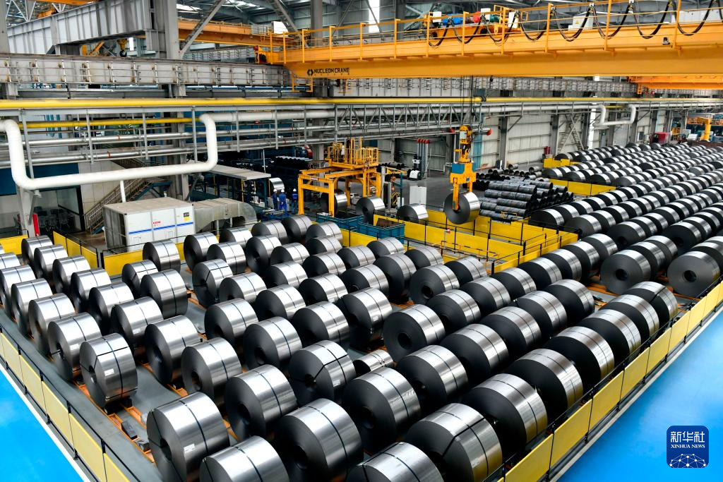 5月21日在日照昱岚智造产业园拍摄的钢卷生产车间。