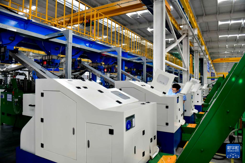 5月21日,山东雷英精工科技有限公司工作人员在紧固件生产线值守。