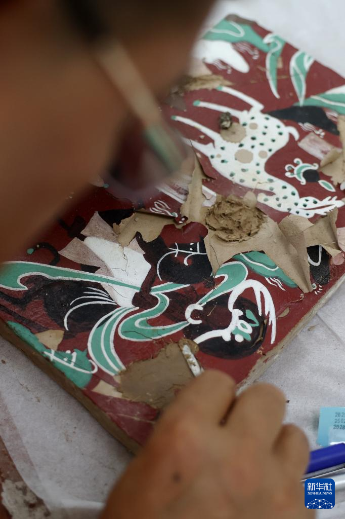 5月22日,来自甘肃省博物馆的参赛选手李娜娜在壁画文物修复比赛中。