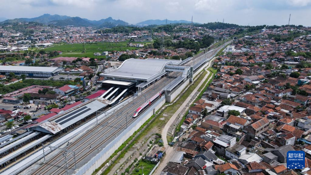 这是5月20日在印度尼西亚帕达拉朗拍摄的一列雅万高铁帕达拉朗站(无人机照片)。