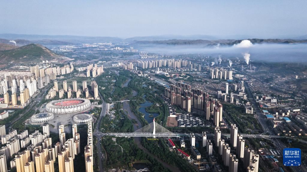 这是5月22日拍摄的青海省西宁市一角(无人机照片)。