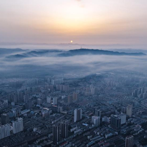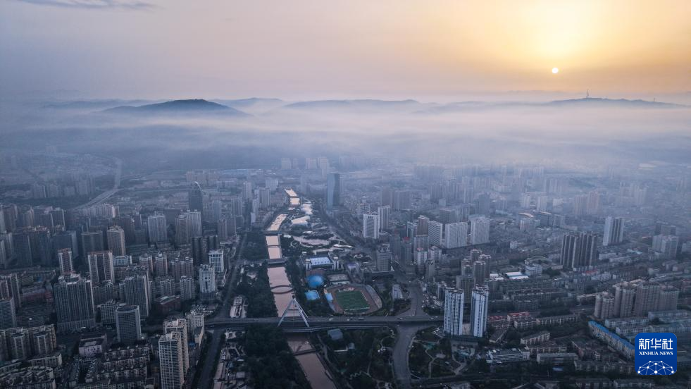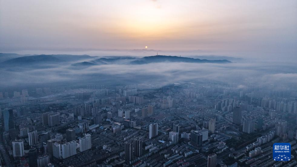 雨后初霁,青海省西宁市云雾缥缈,美不胜收。