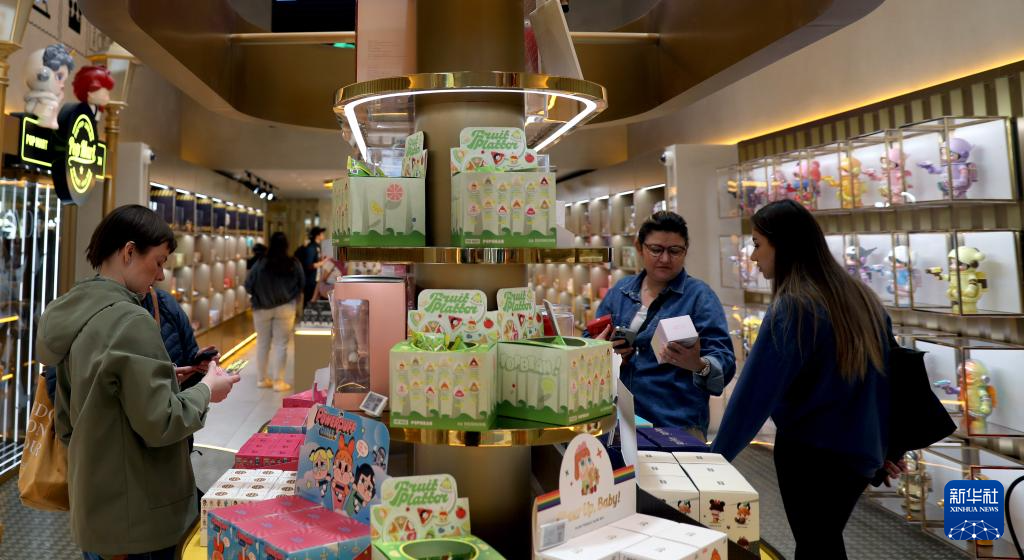 5月21日,顾客在日本东京一家泡泡玛特商店内选购商品。