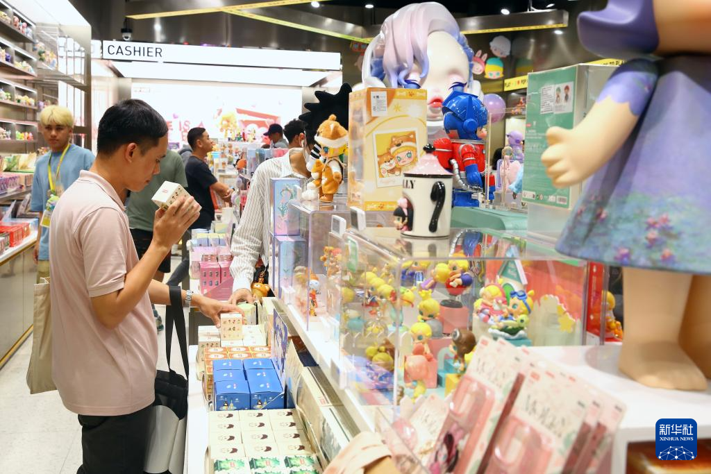 5月19日,顾客在泰国曼谷尚泰世界购物中心的泡泡玛特门店购买商品。