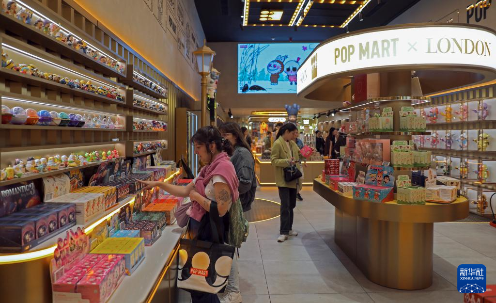 5月21日,顾客在泡泡玛特英国伦敦牛津街店内选购。