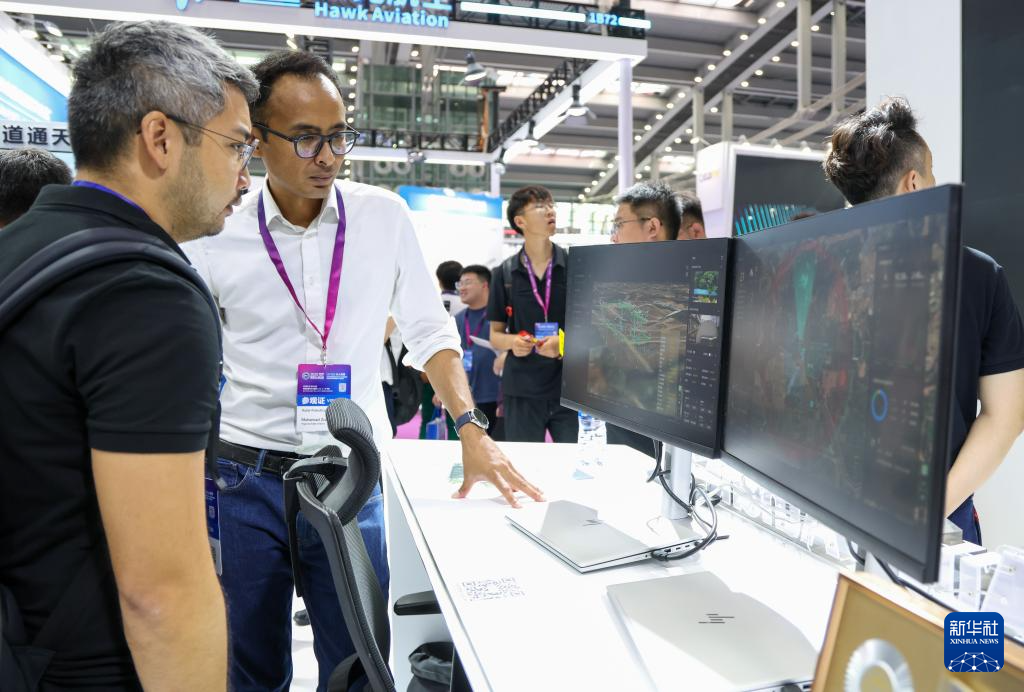 5月23日,参会者在道通智能展台了解一款AI大模型智算平台。