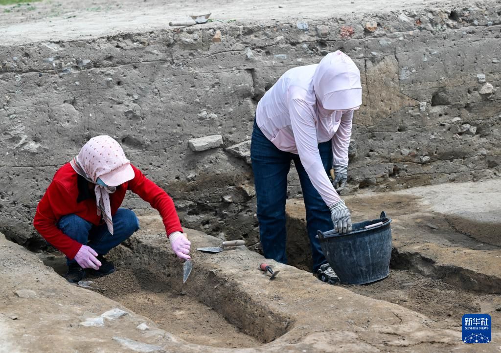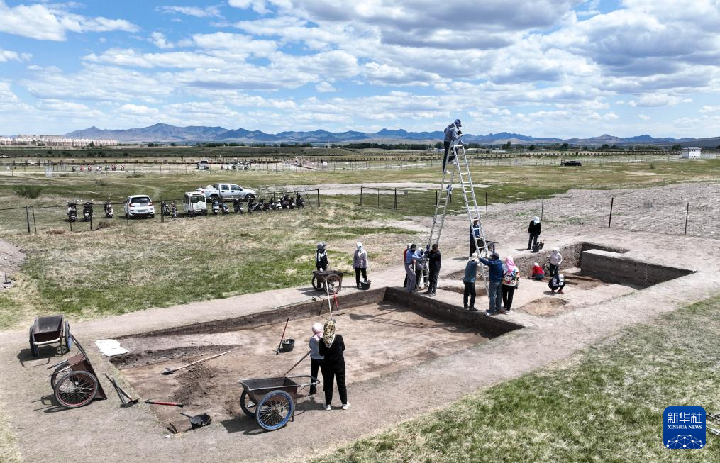 5月23日,考古人员在辽上京遗址进行发掘(无人机照片)。