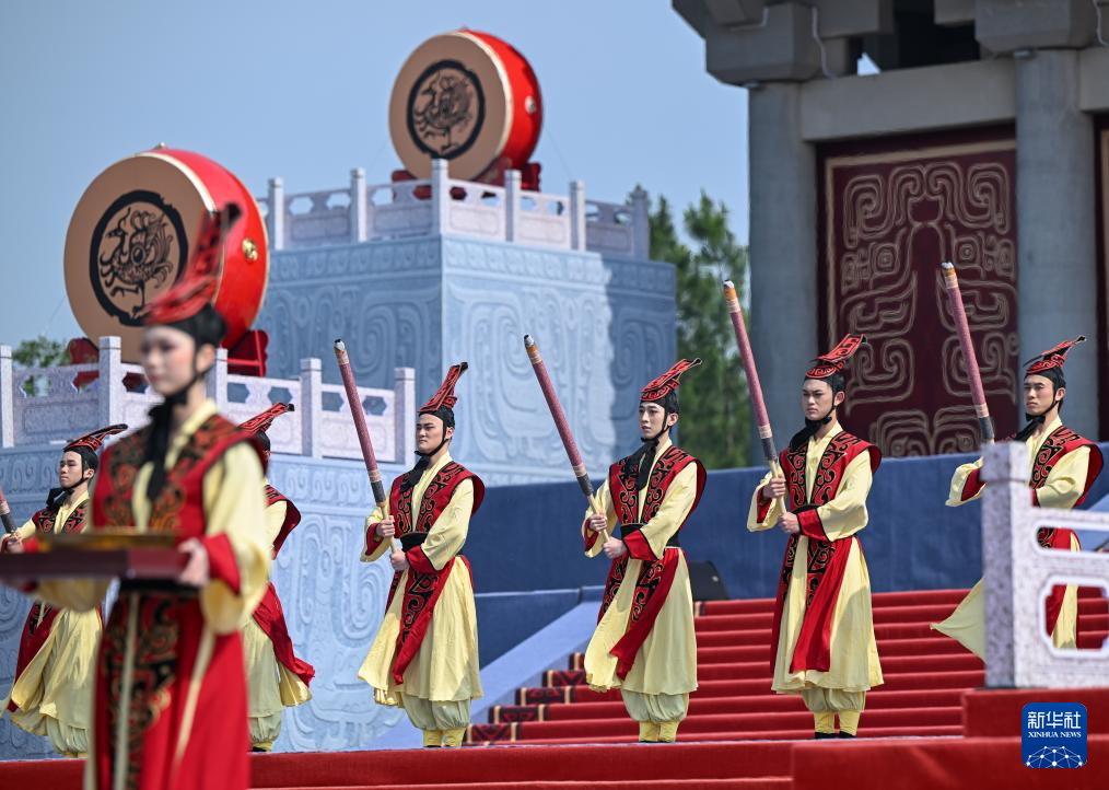 5月23日,演员在乙巳年世界华人炎帝故里寻根节上演奏鼓乐。