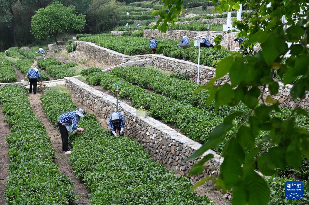 5月22日,茶农在日照市岚山区“北门外1966”茶园采茶。