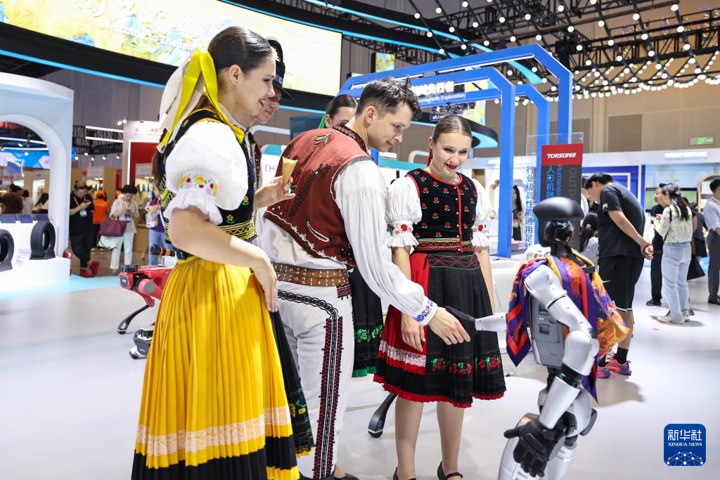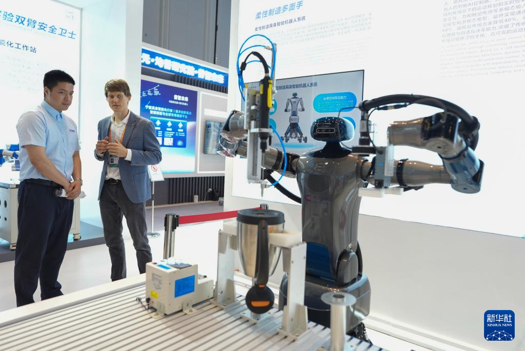 5月22日,客商在“数智中东欧”展区了解具身智能机器人系统。