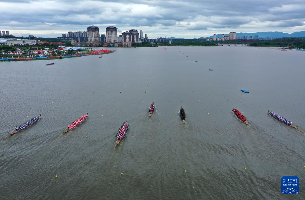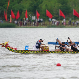 当日,2025中国南昌国际龙舟赛在江西省南昌市红谷滩区九龙湖水域开赛,共吸引来自国内外的50支龙舟队,超1500人参加。本届赛事采用直道竞速赛与表演赛双轨并行的赛制,共设县区组33人龙舟、公开组22人龙舟、高校组12人龙舟三大组别,赛道全长800米。