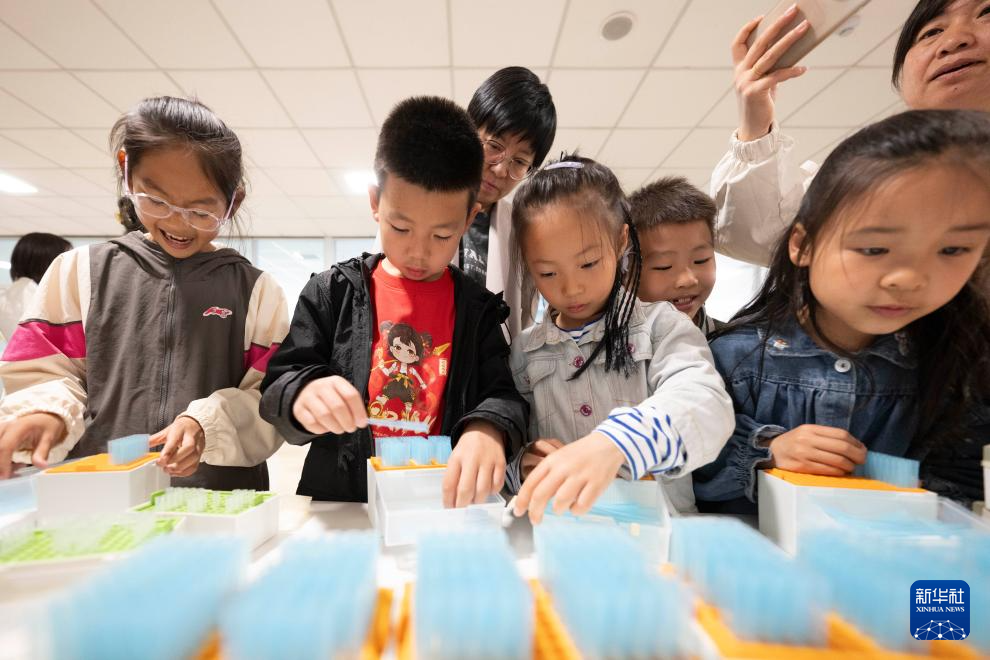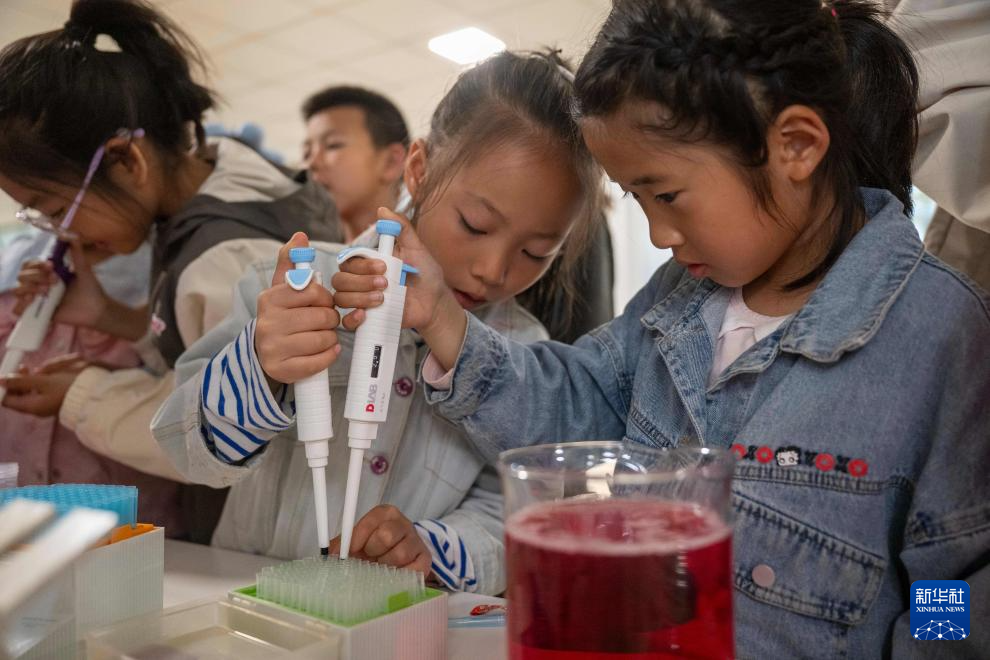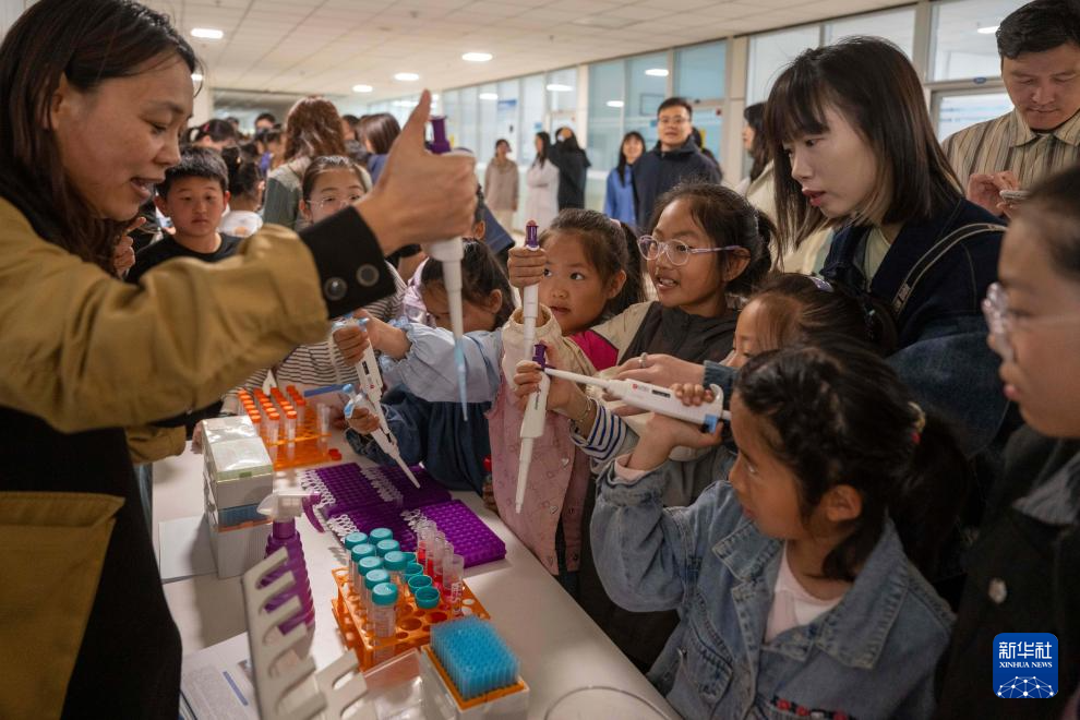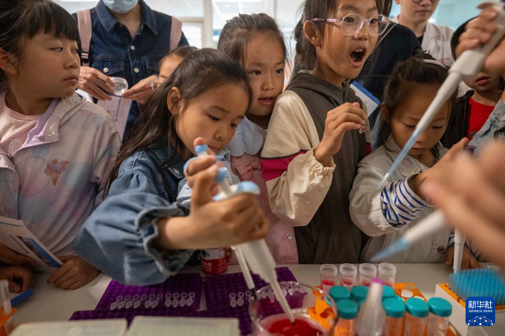 5月24日,在中国农业科学院哈尔滨兽医研究所,孩子们现场体验实验设备。