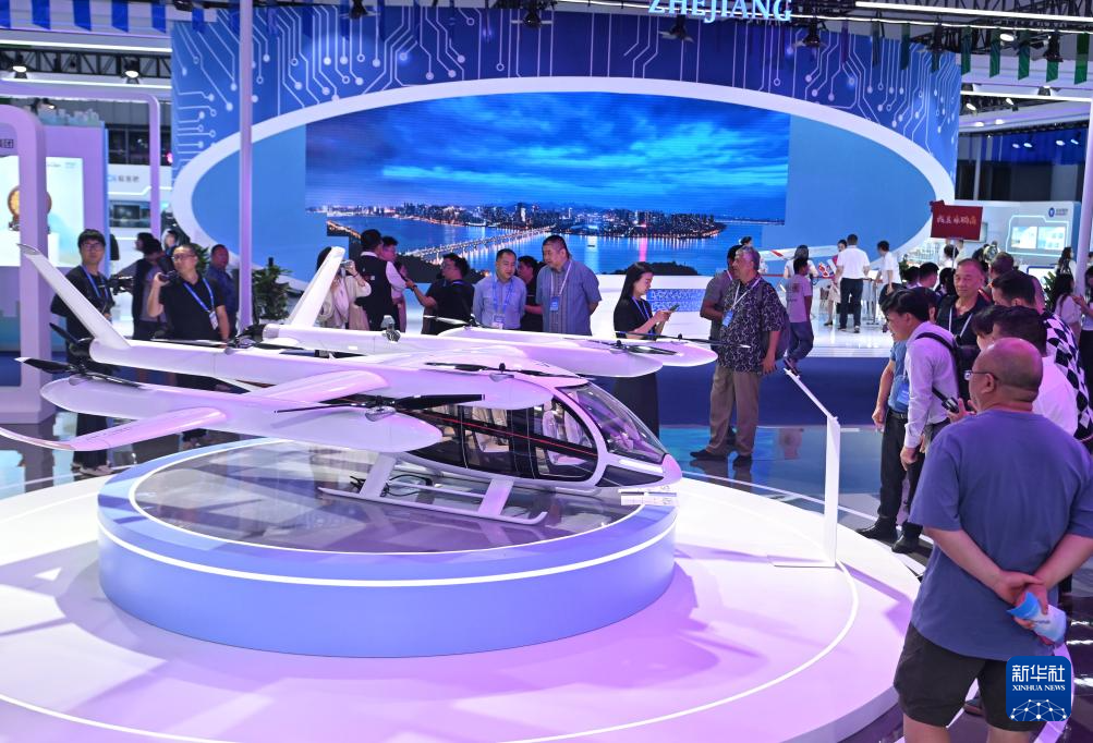 5月25日,观众在第二十届中国西部国际博览会四川馆参观展出的高等级商用客运航空器模型。
