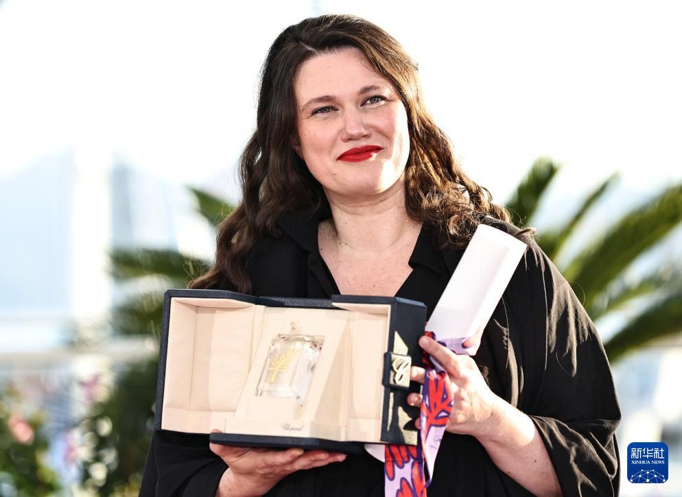 5月24日,在法国南部小城戛纳,德国导演、编剧玛莎·施林斯基出席拍照式。其执导的影片《坠落之声》与西班牙、法国合拍片《接近终点》共同获得评审团奖。