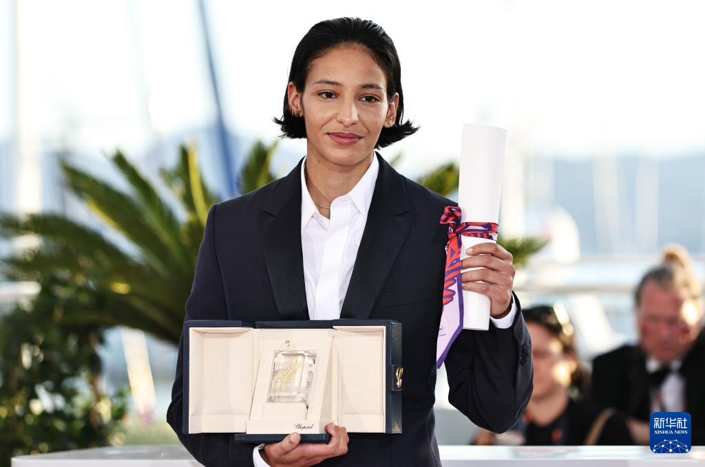 5月24日,在法国南部小城戛纳,法国演员纳迪娅·梅利蒂出席拍照式。法国、德国合拍片《最小的女儿》主演纳迪娅·梅利蒂获得最佳女演员奖。