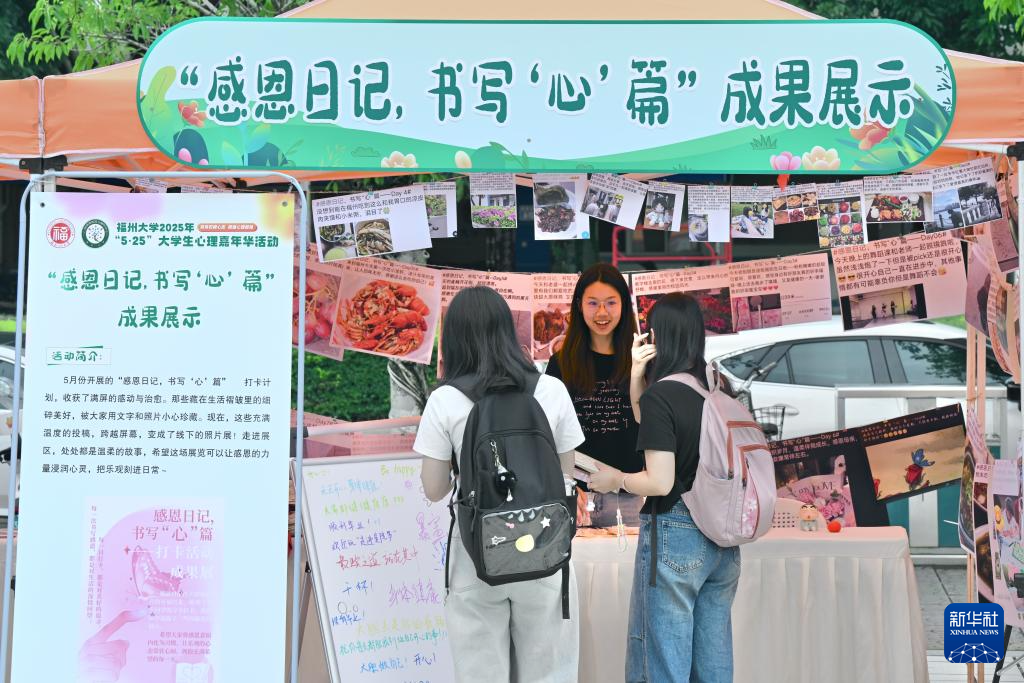 5月25日,在福州大学心理嘉年华活动上,学生在参与“感恩日记”心理互动项目。