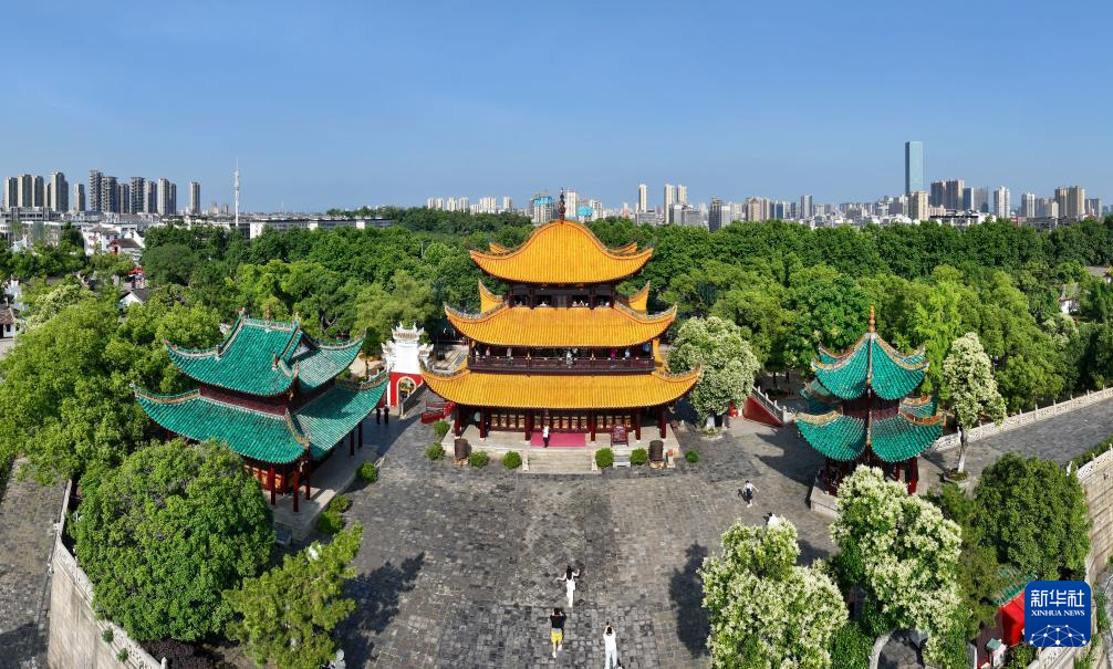 5月26日,游客在岳阳楼景区游览(无人机照片)。