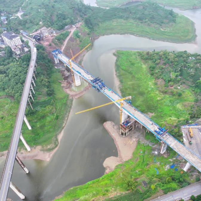 珍溪河双线大桥位于重庆市涪陵区珍溪镇,是全线重难点工程。目前渝万高铁建设各项工程进展顺利,正线桥梁149座,已完成设计工程量的80.9%,正线隧道65座,已贯通37座。