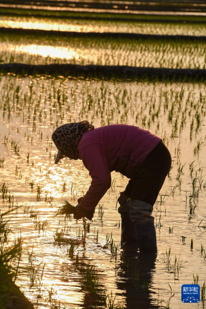 5月26日,在吉林省吉林市永吉县鑫丰种植农民专业合作社,农民补种水稻秧苗。