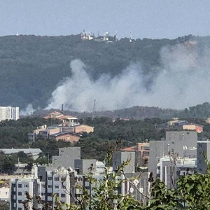 5月29日,在韩国浦项,韩国海军巡逻机坠落地点冒出浓烟。