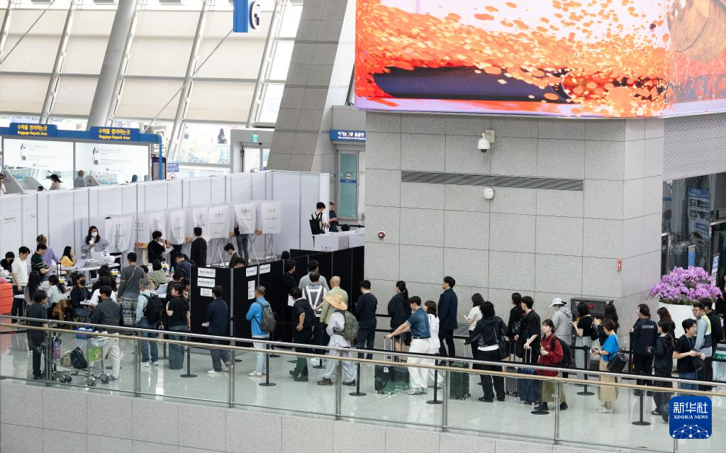 5月29日,选民在韩国仁川机场的投票站排队等待投票。