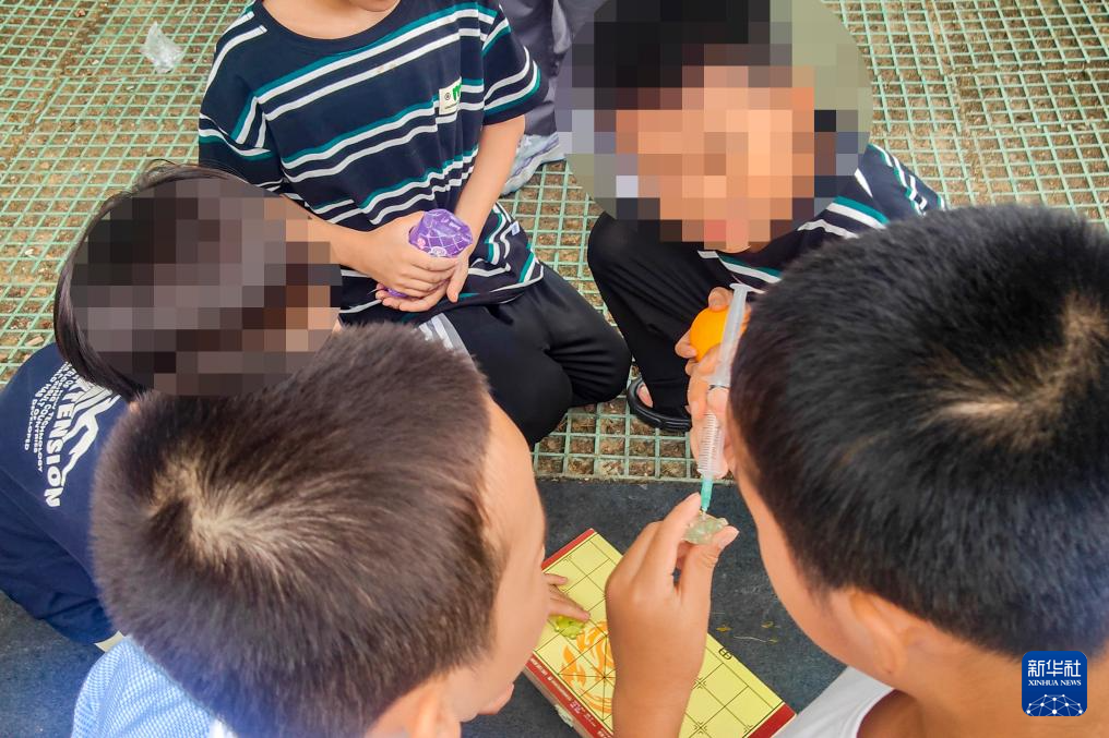5月27日,在广西南宁一所小学校外,学生们放学后聚在一起玩“捏捏乐”。新华社记者 曹祎铭 摄pagebreak
