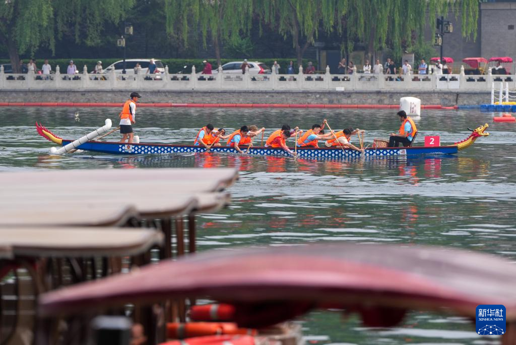 5月29日,2025中国大运河文化带京杭对话配套活动“河之端”龙舟赛在北京市西城区什刹海进行。