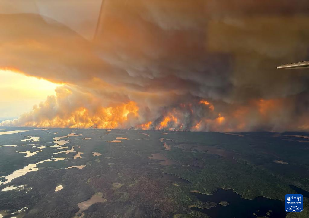 这是5月27日在加拿大马尼托巴省弗林弗伦附近航拍的野火现场。
