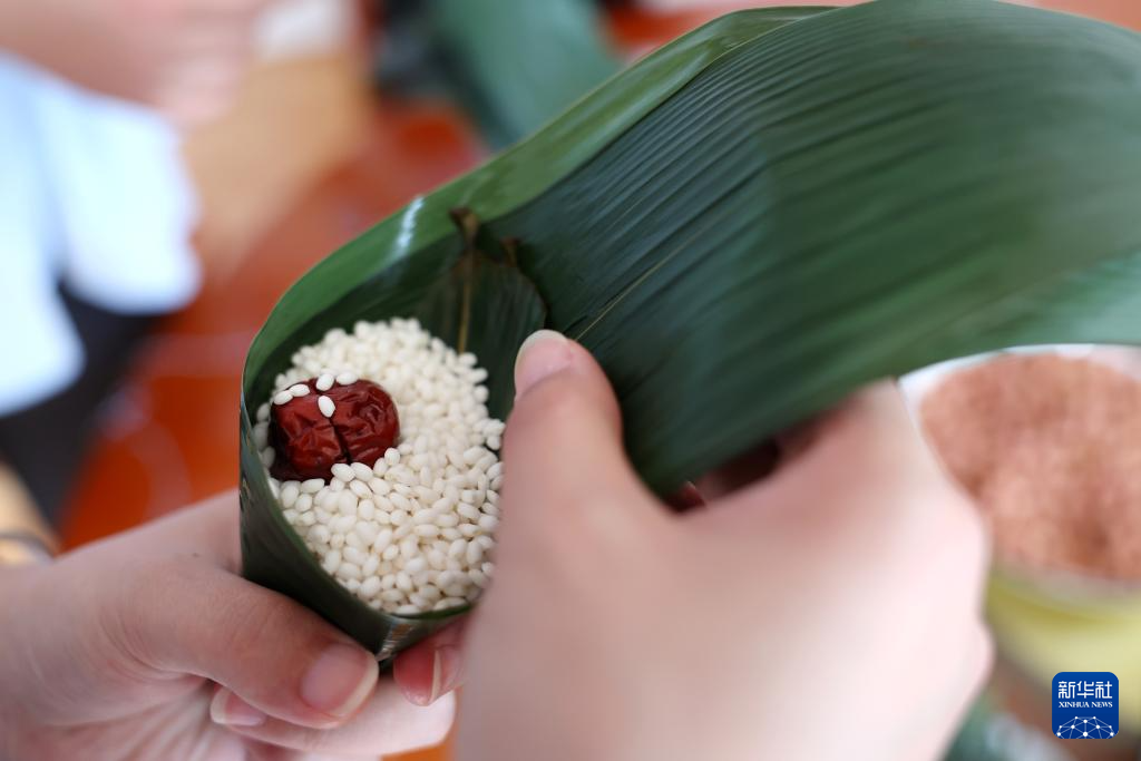 中铁二十局的一线建设者在项目工地上包粽子(5月29日摄)。