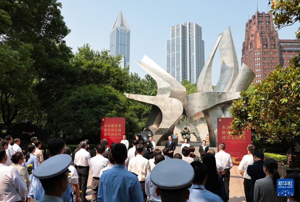 当日,上海市总工会纪念五卅运动100周年主题活动在位于上海人民广场的五卅运动纪念碑广场举行。